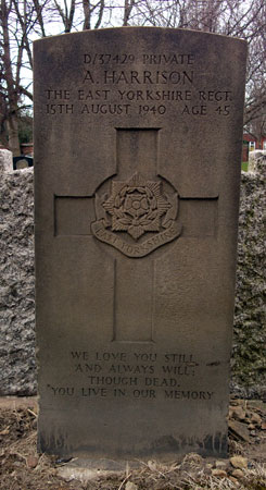 Pte Alfred Harrison (D/37429), East Yorks Reg, 6th(HD)Bn. Aged 45, of Wakefield. Buried Wakefield Cemetery, Yorkshire.