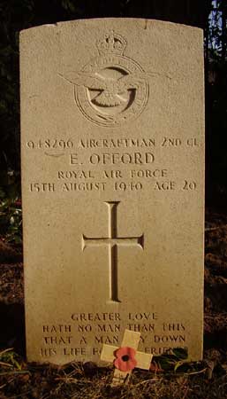 AC2 Eric Offord RAFVR (948296), aged 20, of Crossgates, Leeds. Buried Driffield Cemetery, Yorkshire. (77 Sqn).