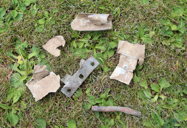 East Yorkshire aviation expert Rodney Robinson along with historians Ken Reast, Albert Pritchard and Eric Barton obtained permission from the landowner in June 2000 and located small fragments of the aircraft on the surface at the crash site to confirm the location as being near Crossmere Hill. The photograph shown above depicts fragments of this aeroplane that were found and retained by Eric Barton following his visit.