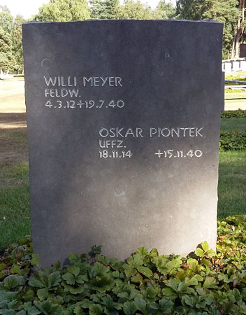 Gunner - Uffz Oskar Piontek (Luftwaffe). Died of injuries on 15th November 1940. Initially buried Driffield Cemetery. Buried Cannock Chase Cemetery, Staffordshire.