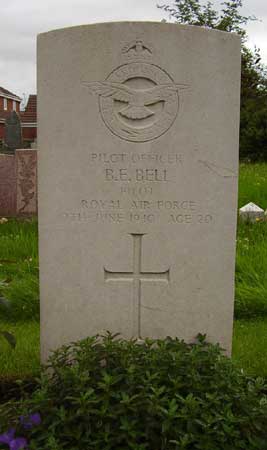 Pilot - P/O Bewsher Eric Bell RAF (41653), aged 20, of Gisborne, Auckland, New Zealand. Died 7th June 1940. Buried Catterick Cemetery, Yorkshire.