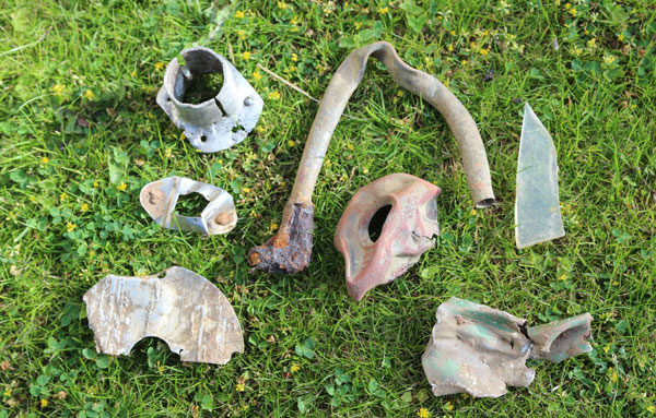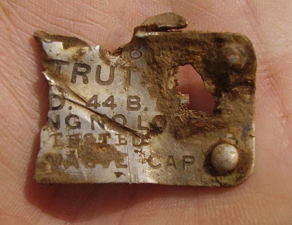 Two photographs showing the area of the crash. The top one appeared in Brian Rapier's "White Rose Base" book, the lower photograph is taken of exactly the same area in 2008. In June 2008 I was invited to attempt to locate the site by fellow air historians Albert Pritchard, Ken Reast and Eric Barton who had been given permission to visit the field by the land owner Mr M.Robinson. We located a handful of pieces in the area of the crash but enough to say this was the exact area of the crash. Of those parts a makers plate was discovered and was identified as part of the hydraulic system.