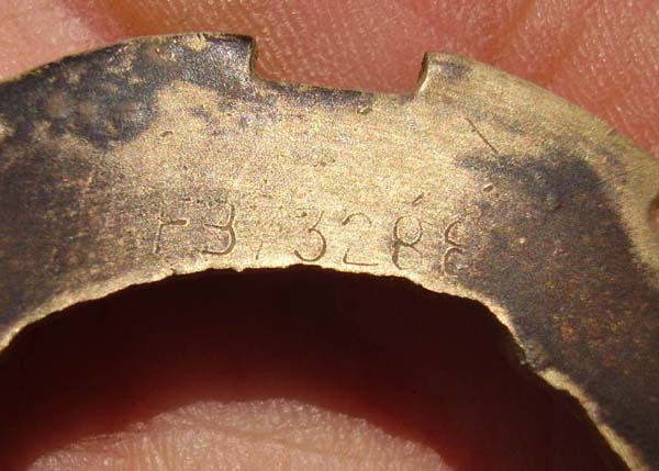 A brass part with a part number, the "FB" part relating to Blenheims and more specifically "Fedden & Butler".