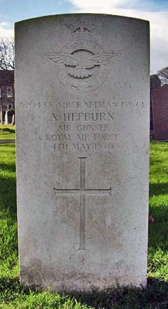 Air Gunner - AC1 Angus Hepburn RAF (620438), aged 20, of Leith, Edinburgh. Died the following day from his injuries. Buried Seafield Cemetery, Edinburgh.