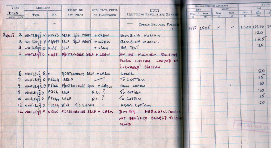 Observer's Badge in May 1940 and then posted to No.10 Operational Training Unit (OTU) at RAF Abingdon. In June 1940 he was posted to 77 Squadron at RAF Driffield in Yorkshire, then a