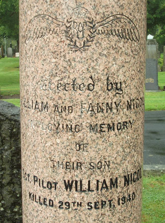 Pilot - Sgt William Nicol RAFVR (742765), aged 26, of Ayr. Buried Ayr Cemetery, Ayrshire, Scotland.