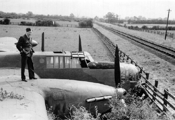 stretch of railway line just before the Riseborough cutting. The aircraft took out a hedge row and lost its port rudder. It came to rest with its nose up against