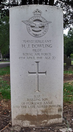 Sgt Dowling was killed on 4th April 1941 flying Whitley Z6583 which crashed near Chichester, Sussex on return from Ops to Brest, their aircraft was instructed