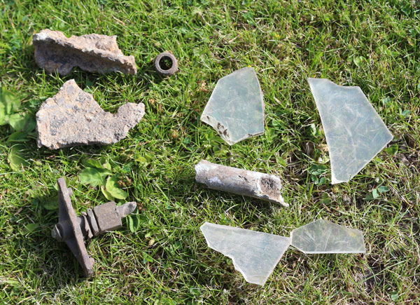 Historian Eric Barton sought permission from the landowner and located small remains of what he believed was Hampden AD897 in a field in September 2004 just north of Wroot village and inside Lincolnshire. The photograph above shows items he retained following this visit. The deaths of the crew were registered in the Scunthorpe district of Lincolnshire which fits for the location. As such this incident almost certainly did not occur in Yorkshire and requires deletion from this website.
