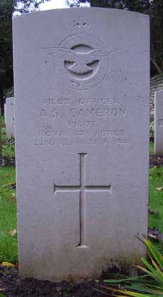 Pilot - P/O Alan Sherwood Cameron RAFVR (83212), aged 30, of Brisbane, Queensland, Australia. Buried Kirkby Wharfe Cemetery, Yorkshire.