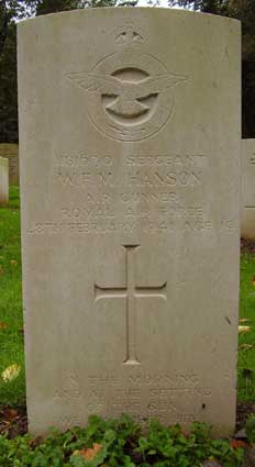 Air Gunner - Sgt William Frederick Moore Hanson RAFVR (1181630), aged 19, of Aylesbury, Buckinghamshire. Buried Kirkby Wharfe Cemetery, Yorkshire.