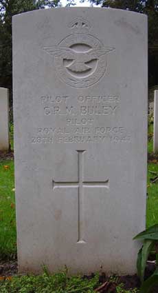Pilot - P/O George Rowley Merriman Buley RAFVR (60064), aged 24, of Eastry, Kent. Buried Kirkby Wharfe Cemetery, Yorkshire.