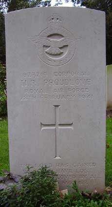 Passenger - Cpl Henry Rushton Proudlove RAF (623219), aged 21, of Sidcup, Kent. Buried Kirkby Wharfe Cemetery, Yorkshire.