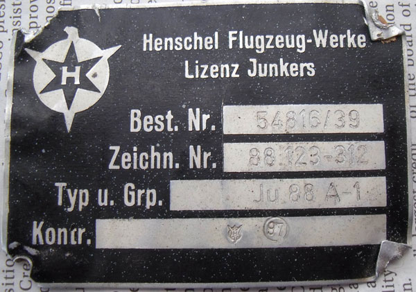 for his assistance in this visit. The makers plate shown below was found by Mr Colemans father the day after the accident and was taken home.