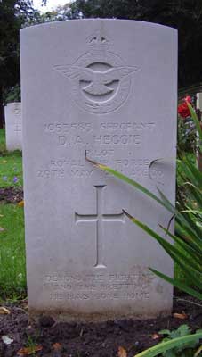 Pilot - Sgt David Alexander Heggie RAF (1053585), aged 26, of Edinburgh, Scotland. Buried Kirkby Wharfe Cemetery, Yorkshire.