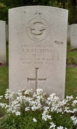 Sgt Ratcliffe was killed on 10th April 1941 when Hampden AN789 failed to return from Ops to Dusseldorf. He is buried at Jonkerbos War