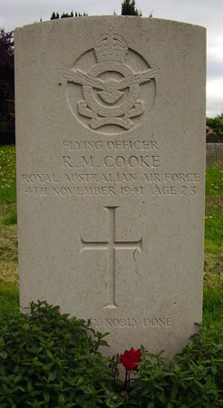 Pilot - F/O Rolla Maxwell Cooke RAAF (402316), aged 23, of Sydney, New South Wales, Australia. Buried Catterick Cemetery, Yorkshire.
