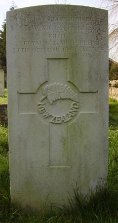 Pilot - P/O Thomas William McClure Leckie RNZAF (NZ.402196), aged 24, of Heretaunga, Wellington, New Zealand. Buried Leconfield Churchyard, Yorkshire.