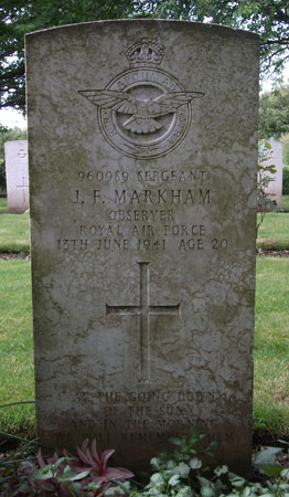 Observer - Sgt James Francis Markham RAFVR (960989), aged 20, of Stowupland, Suffolk. Buried Finningley Churchyard Extension, Yorkshire.