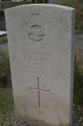 to F/O on 3rd September 1940. The 54 Squadron record book makes mention of this accident stating "P/O "Jock" Bocca crashed and was killed. This sad accident has caused 54 to lose not only a very experienced pilot but also a very fine and likeable young man."