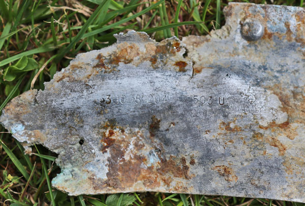 Ken Reast, Albert Pritchard and Eric Barton were taken to the crash site by the land owner in September 1999 and this item was located on the surface next to a fence post.