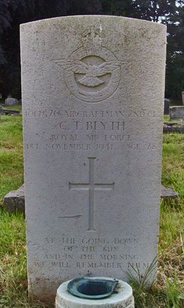Charles Blyth was the son of Thomas and Gertrude Amelia Blyth of Hull and as a boy he attended Salthouse Lane School, Hull. He later worked for a confectionary company in Hull and joined the RAF in 1940. He had married a Beverley girl; Dora Dyson Blyth and they had lived in Beverley since 1938 living at "The Cash Stores", Grovehill Road, Beverley in 1941. His father Pte Thomas Blyth was killed on 14th July 1918 while serving in the Durham Light Infantry and is buried in Klein-Vierstraat British Cemetery, Belgium.