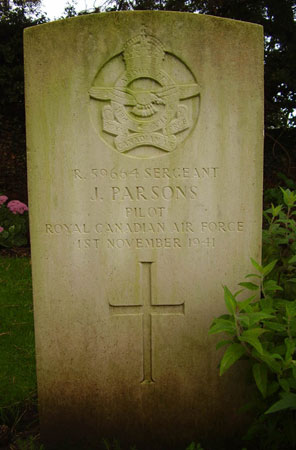 Pilot - Sgt John Parsons RCAF (R/59664), of Holland, Manitoba, Canada. Buried Brandesburton Churchyard, Yorkshire.