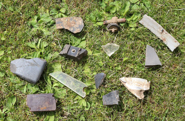 Air historians Albert Pritchard, Eric Barton and Ken Reast with East Yorkshire aviation expert Rodney Robinson located small fragments on the surface at the crash site in December 2001 with permission from the landowner, confirming the crash location. The photograph above shows small fragments that were retained by Eric following the visit.