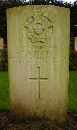 Pilot - Sgt Douglas Vaughan Jenkins RAAF (400474), aged 25, of Mildura, Victoria, Australia. Buried Brandesburton Churchyard, Yorkshire.