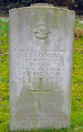 Pilot (U/T) - LAC James Stephen Coogan RAFVR (1252908), aged 21, of Hobart, Tasmania, Australia. Buried Stoke upon Tern Church Cemetery, Shropshire.