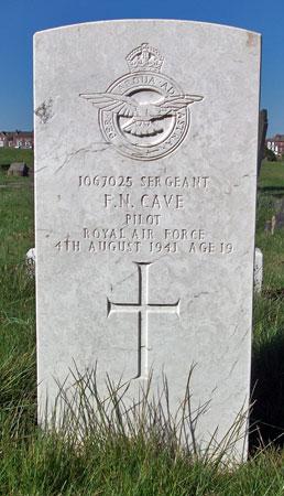 Pilot - Sgt Francis Neville Cave RAFVR (1067025), aged 19, of Liverpool. Buried Toxteth Park Cemetery, Liverpool.