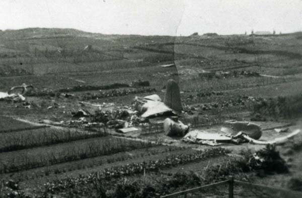 The crash scene as it was soon after the accident. My thanks to local historian Mr Richard Percy for his input in researching this incident and for providing this photograph. Mr Percy has published a number of books about Scarborough. The old alloments appear to have been north of the house it struck.