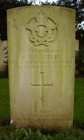 Pilot - Sgt Charles Figsby Colville Steele RAAF (400496), aged 20, of Leslie Manor, Victoria, Australia. Buried Brandesburton Churchyard, Yorkshire.