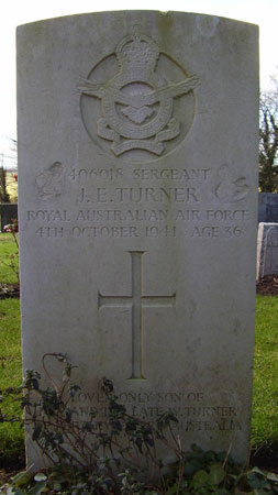 Observer - Sgt John Ernst Turner RAAF (406018), aged 36, of Swanbourne, Western Australia. Died of injuries on 4th October 1941. Buried Newton on Ouse Churchyard, Yorkshire.