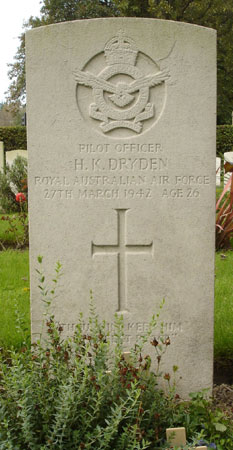 Henry Dryden was born in Ariah Park, New South Wales on 17th January 1916 but lived on Bellevue Hill, Sydney, Australia and was working in a bank when he enlisted. He enlisted for RAAF service on 3rd February 1941 in Sydney and trained as an air observer in Canada. He received a commission to the rank of P/O on 24th November 1941 on completion of his training in Canada and was later posted to 6 OTU on 24th February 1942 on arrival in the UK. He was buried in Thornaby Cemetery on 30th March 1942. I thank his nephew, Mr Brian Selby, for the photograph of his uncle and the information that he has kindly provided to this account.