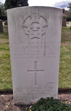 Instructor Pilot - F/Sgt John Neil MacIver RCAF (R/92757), aged 21, of Calgary, Alberta, Canada. Buried Brigg Cemetery, Lincolnshire.