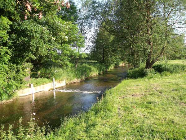 The aircraft had impacted in the river shown in this photograph but the site has almost certainly been concreted over in the creation of a small weir in the early 2000's.
