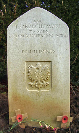 Pilot - Kpl Tadeusz Orzechowski PAF (P/783097), aged 21. Buried Driffield Cemetery, Yorkshire.