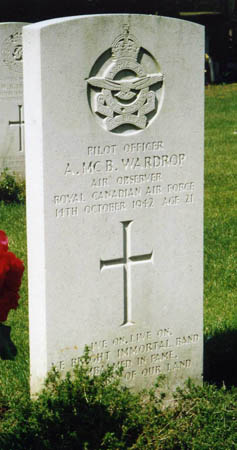 Observer (Bomb Aimer) - P/O Alexander McBirnie Wardrop RCAF (J/12976), aged 21, of Deroche, British Columbia, Canada. Buried Ripon Cemetery, Yorkshire.