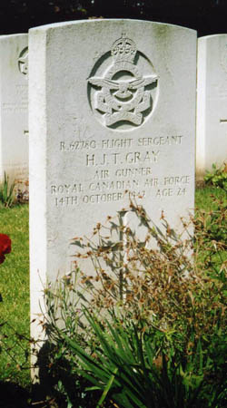 Wireless Operator / Air Gunner - F/Sgt Harry Joseph Thomas Gray RCAF (R/62780), aged 24, of Sherbrooke, Quebec, Canada. Buried Ripon Cemetery, Yorkshire.