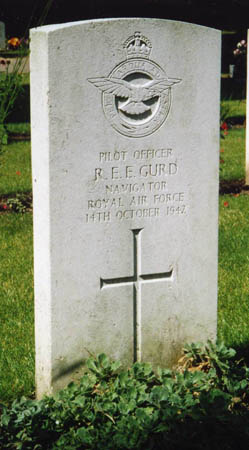 Navigator - P/O Ronald Edward Eric Gurd RAFVR (129532), aged 22. Of London. Buried Ripon Cemetery, Yorkshire.