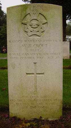 Pilot - WO2 Wesley Bethuel Croft RCAF (R/83002), aged 20, of Maidstone, Ontario, Canada. Buried Ripon Cemetery, Yorkshire.