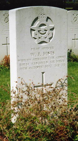 Wireless Operator / Air Gunner - P/O William James Jones RCAF (J/15726), aged 23, of Winnipeg, Manitoba, Canada. Buried Ripon Cemetery, Yorkshire.