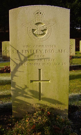 Pilot - W/Co Sydney Bruce Bintley DSO AFC RAF (39961), aged 29, of Reigate, Surrey. Buried Barmby Moor Churchyard, Yorkshire.