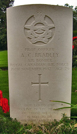 Air Bomber - P/O Allen Catto Bradley RCAF (J/18602), aged 29, of Regina, Saskatchewan, Canada. Buried Dishforth Cemetery, Yorkshire.