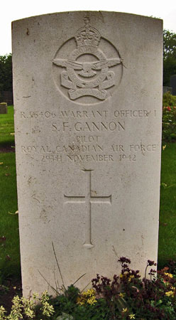 Pilot - WO1 Stephen Frederic Gannon RCAF (R/56406), aged 27. Of Montreal, Quebec, Canada. Buried Dishforth Cemetery, Yorkshire.