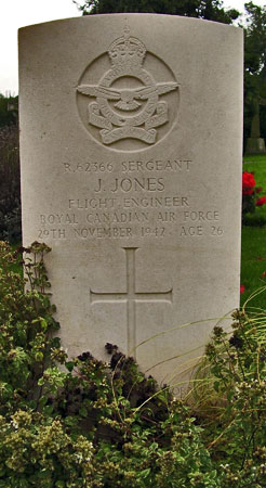 Passenger (Flight Engineer) - Sgt Joseph Jones RCAF (R/62366), aged 26, of Weirdale, Saskatchewan, Canada. Buried Dishforth Cemetery, Yorkshire.
