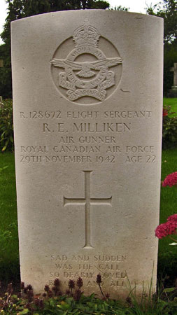 Passenger (Air Gunner) - Sgt Ralph Elliott Milliken RCAF (R/128672), aged 22, of North Vancouver, British Columbia, Canada. Buried Dishforth Cemetery, Yorkshire.