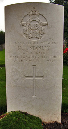 Air Gunner - F/Sgt Melville James Stanley RCAF (R/67711), aged 21, of Leamington, Ontario, Canada. Buried Dishforth Cemetery, Yorkshire.