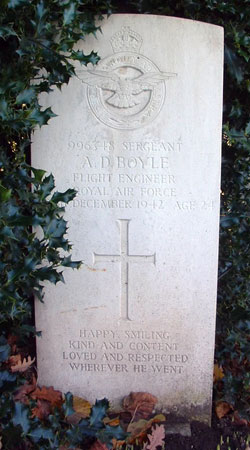 Flight Engineer - Sgt Alexander David Boyle RAFVR (996348), aged 24, of Bonnybridge, Falkirk. Buried Camelon Cemetery, Falkirk, Stirlingshire.